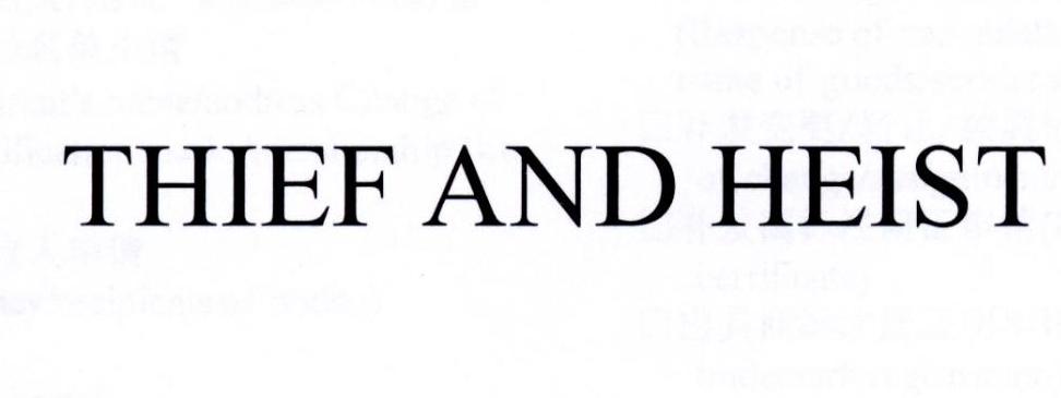 | 申请人名称(英文) | THIEF AND HEIST HOLDINGS,INC. | |||